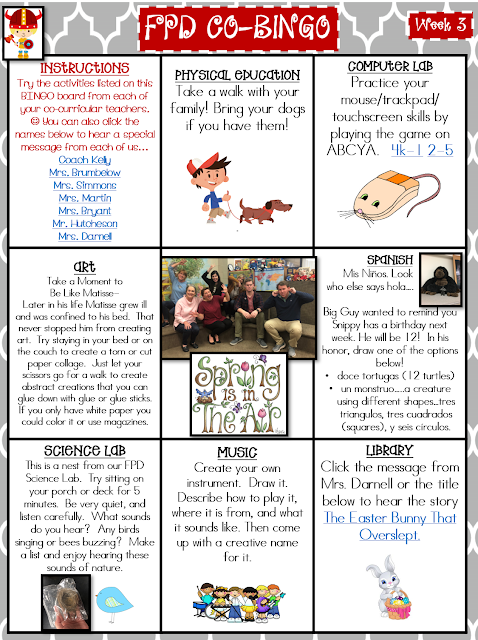 - Check out the co-curricular teachers' blogs for additional learning games and ideas! They are working hard to continue the learning opportunities in their areas of expertise while our campus is closed.